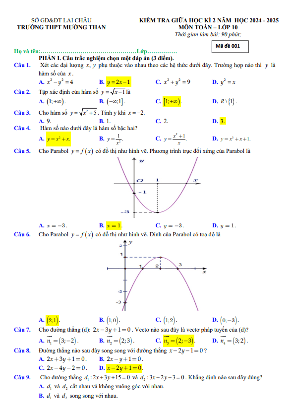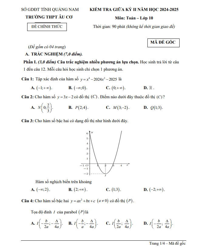 Tổng hợp ĐỀ THI GIỮA HK2 TOÁN 10 có đáp án và lời giải chi tiết của các trường Trung học Phổ thông, Sở Giáo dục và Đào tạo trên toàn quốc (File PDF). Các ĐỀ THI GIỮA HK2 TOÁN 10 mới nhất sẽ được cập nhật liên tục và nhanh nhất có thể sau khi kỳ thi diễn ra, đáp án và lời giải chi tiết cũng sẽ được TOANMATH.com cập nhật sau đó nhằm giúp bạn đọc thuận tiện trong việc tra cứu và đối chiếu đáp án.
