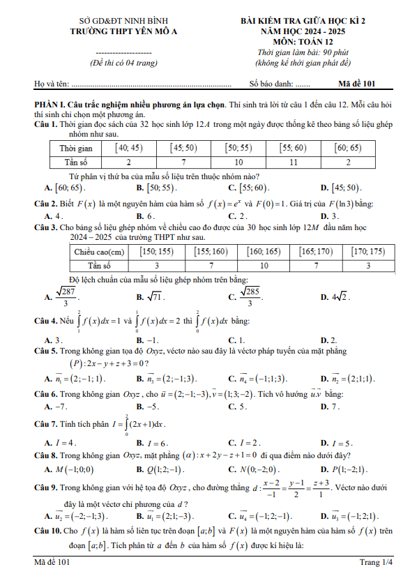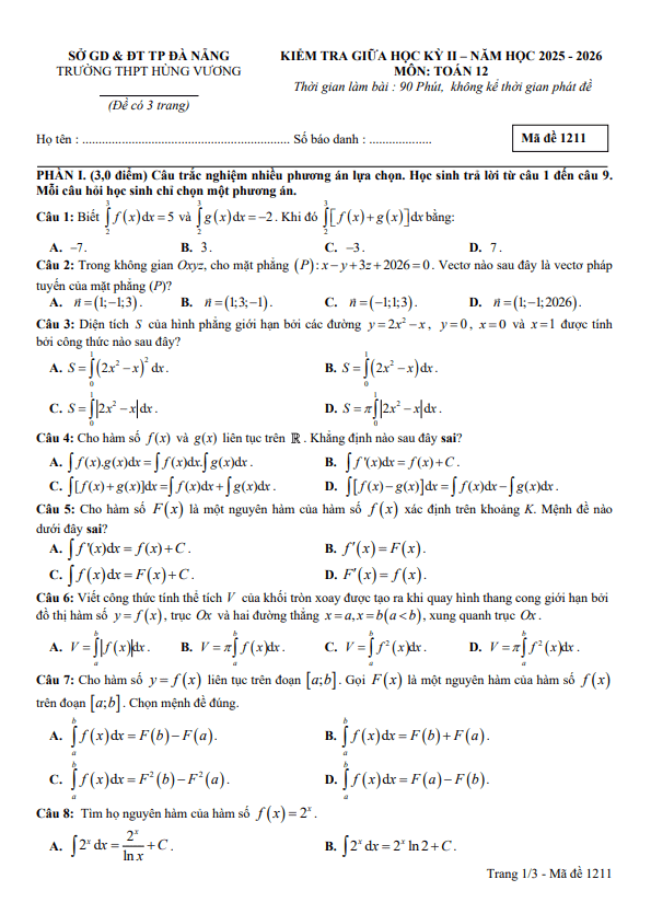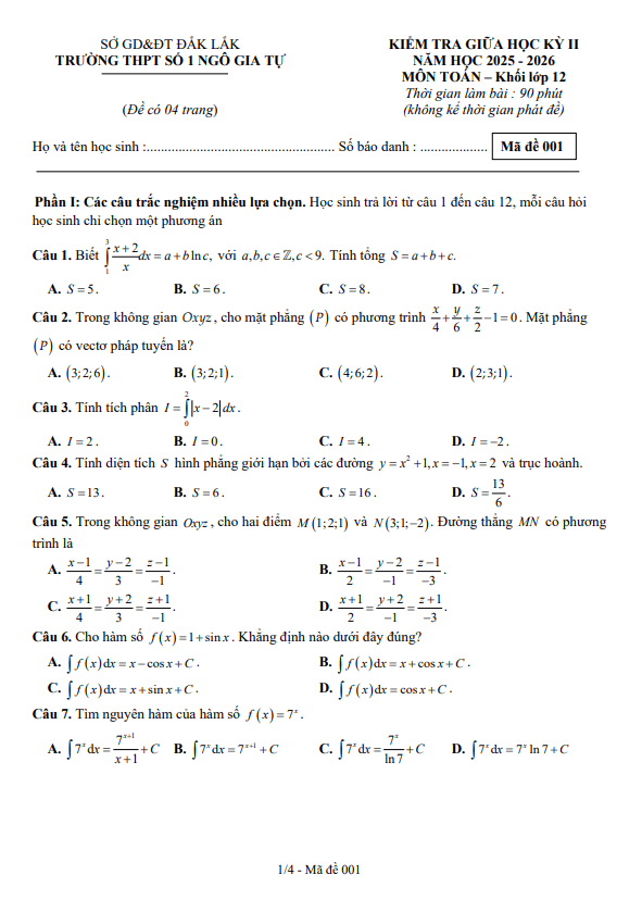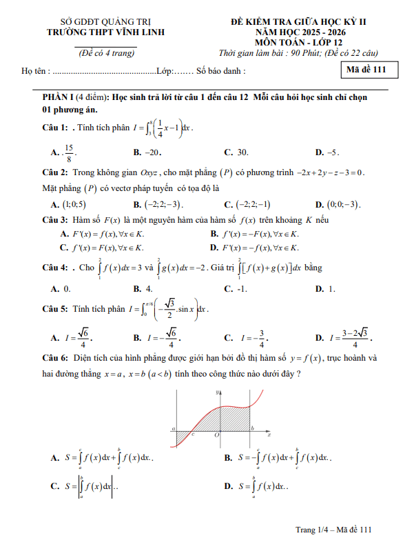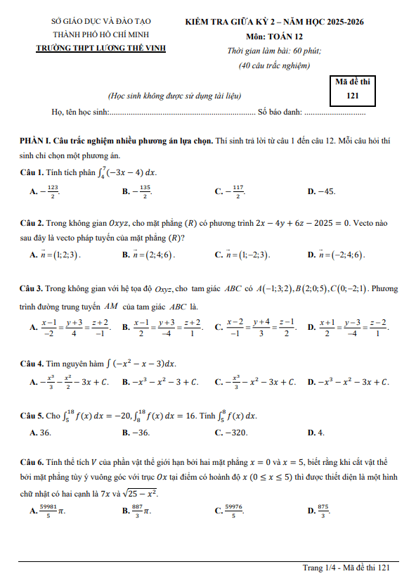 File WORD các ĐỀ THI GIỮA HỌC KÌ 2 TOÁN 12 (nếu có) được đính kèm trong nội dung bài viết, nhằm giúp quý thầy, cô giáo có thể tải xuống miễn phí, phục vụ cho quá trình biên soạn và giảng dạy. Quý thầy, cô giáo và bạn đọc có thể chia sẻ thêm ĐỀ THI GIỮA HỌC KÌ 2 TOÁN 12 bằng cách gửi về địa chỉ email: toanmath.com@gmail.com, nhằm tạo nguồn đề thi phong phú, đa dạng để các em học sinh lớp 12 tham khảo và rèn luyện.