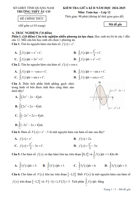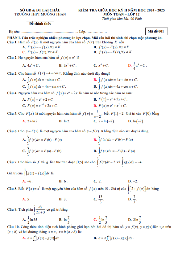 Tổng hợp ĐỀ THI GIỮA HK2 TOÁN 12 có đáp án và lời giải chi tiết của các trường Trung học Phổ thông, Sở Giáo dục và Đào tạo trên toàn quốc (File PDF). Các ĐỀ THI GIỮA HK2 TOÁN 12 mới nhất sẽ được cập nhật liên tục và nhanh nhất có thể sau khi kỳ thi diễn ra, đáp án và lời giải chi tiết cũng sẽ được TOANMATH.com cập nhật sau đó nhằm giúp bạn đọc thuận tiện trong việc tra cứu và đối chiếu đáp án.