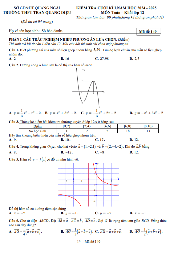 Tổng hợp ĐỀ THI HK1 TOÁN 12 có đáp án và lời giải chi tiết của các trường Trung học Phổ thông, Sở Giáo dục và Đào tạo trên toàn quốc (File PDF). Các ĐỀ THI HK1 TOÁN 12 mới nhất sẽ được cập nhật liên tục và nhanh nhất có thể sau khi kỳ thi diễn ra, đáp án và lời giải chi tiết cũng sẽ được TOANMATH.com cập nhật sau đó nhằm giúp bạn đọc thuận tiện trong việc tra cứu và đối chiếu đáp án.