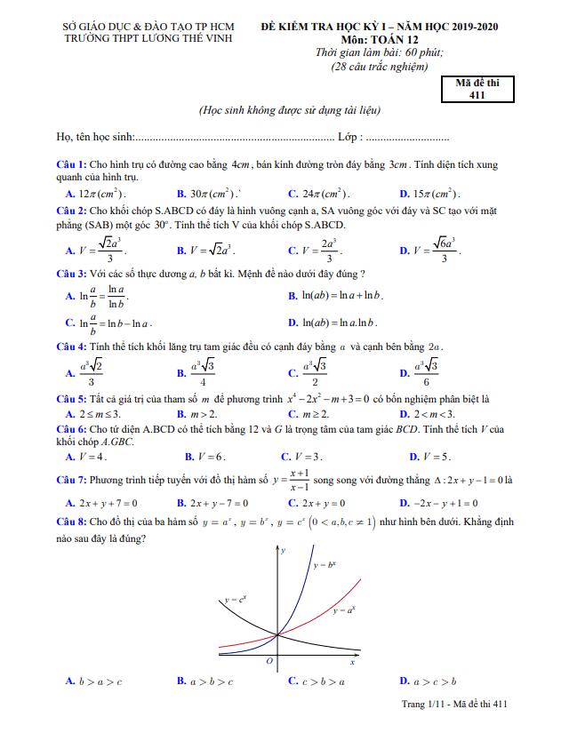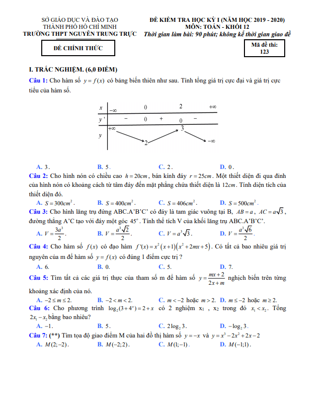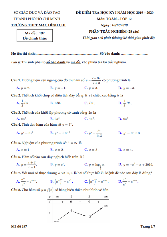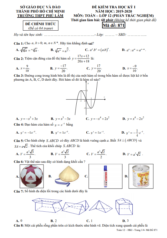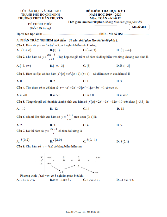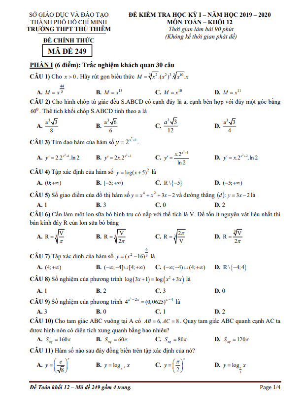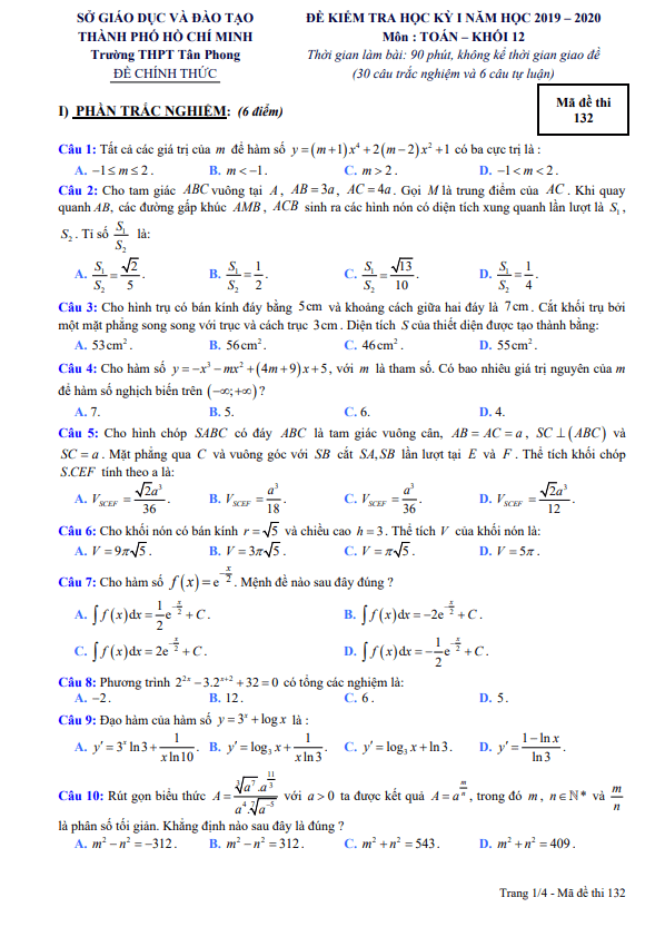 Tổng hợp ĐỀ THI HK1 TOÁN 12 có đáp án và lời giải chi tiết của các trường Trung học Phổ thông, Sở Giáo dục và Đào tạo trên toàn quốc (File PDF). Các ĐỀ THI HK1 TOÁN 12 mới nhất sẽ được cập nhật liên tục và nhanh nhất có thể sau khi kỳ thi diễn ra, đáp án và lời giải chi tiết cũng sẽ được TOANMATH.com cập nhật sau đó nhằm giúp bạn đọc thuận tiện trong việc tra cứu và đối chiếu đáp án.