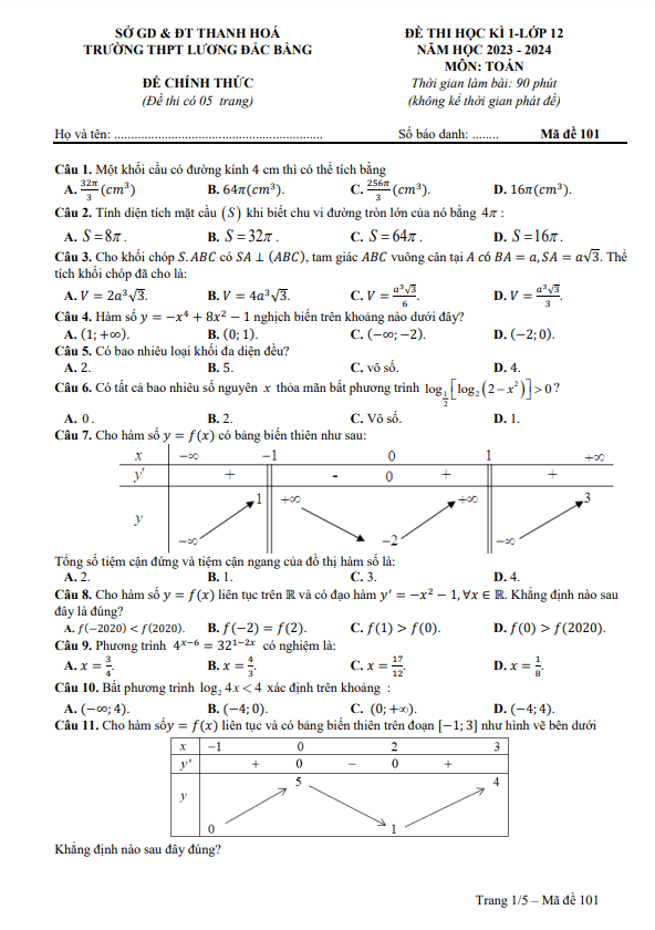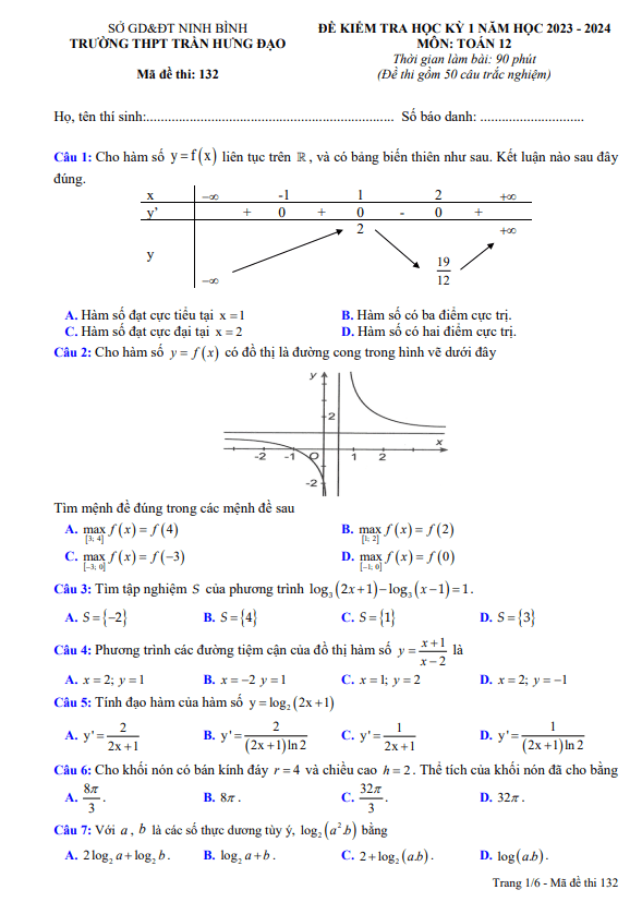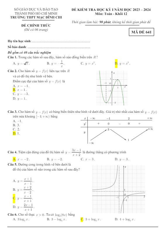 Tổng hợp ĐỀ THI HK1 TOÁN 12 có đáp án và lời giải chi tiết của các trường Trung học Phổ thông, Sở Giáo dục và Đào tạo trên toàn quốc (File PDF). Các ĐỀ THI HK1 TOÁN 12 mới nhất sẽ được cập nhật liên tục và nhanh nhất có thể sau khi kỳ thi diễn ra, đáp án và lời giải chi tiết cũng sẽ được TOANMATH.com cập nhật sau đó nhằm giúp bạn đọc thuận tiện trong việc tra cứu và đối chiếu đáp án.