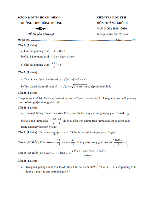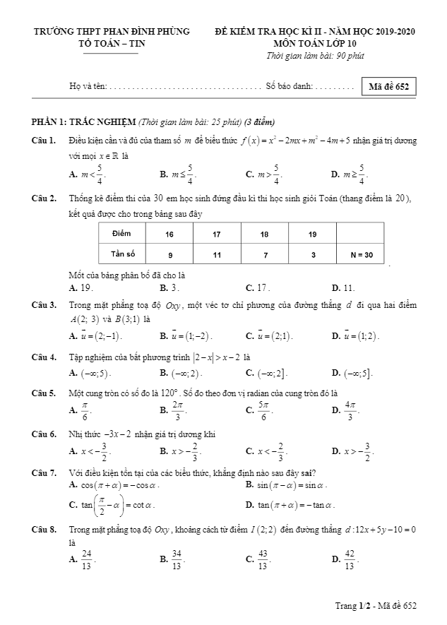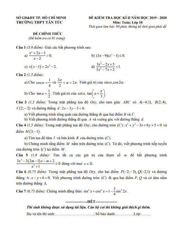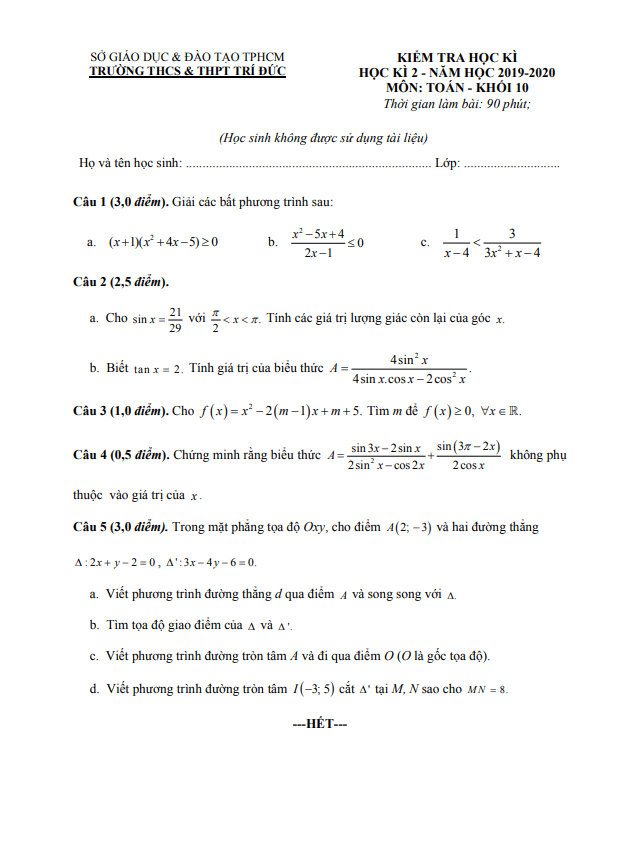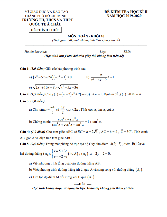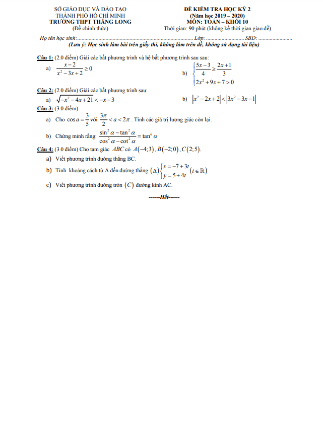 Tổng hợp ĐỀ THI HK2 TOÁN 10 có đáp án và lời giải chi tiết của các trường Trung học Phổ thông, Sở Giáo dục và Đào tạo trên toàn quốc (File PDF). Các ĐỀ THI HK2 TOÁN 10 mới nhất sẽ được cập nhật liên tục và nhanh nhất có thể sau khi kỳ thi diễn ra, đáp án và lời giải chi tiết cũng sẽ được TOANMATH.com cập nhật sau đó nhằm giúp bạn đọc thuận tiện trong việc tra cứu và đối chiếu đáp án.