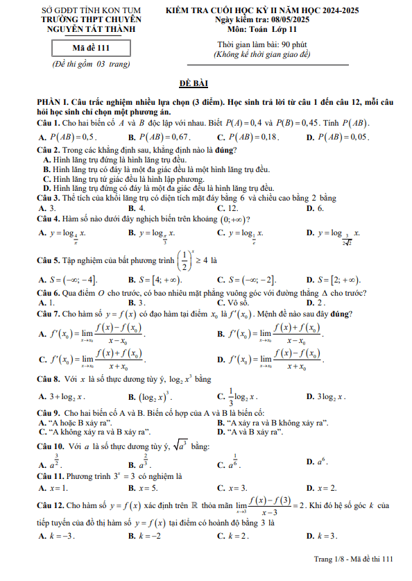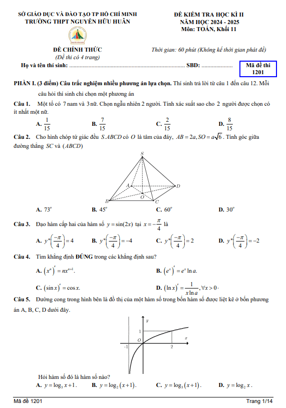 Tổng hợp ĐỀ THI HK2 TOÁN 11 có đáp án và lời giải chi tiết của các trường Trung học Phổ thông, Sở Giáo dục và Đào tạo trên toàn quốc (File PDF). Các ĐỀ THI HK2 TOÁN 11 mới nhất sẽ được cập nhật liên tục và nhanh nhất có thể sau khi kỳ thi diễn ra, đáp án và lời giải chi tiết cũng sẽ được TOANMATH.com cập nhật sau đó nhằm giúp bạn đọc thuận tiện trong việc tra cứu và đối chiếu đáp án.