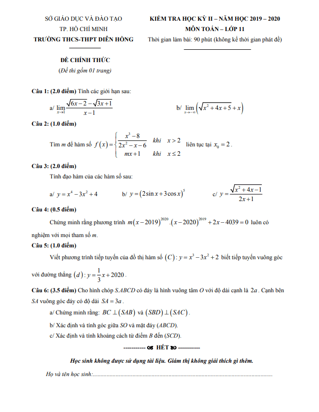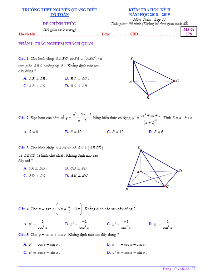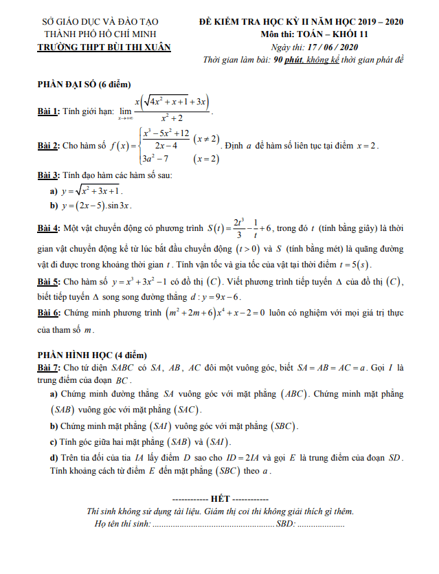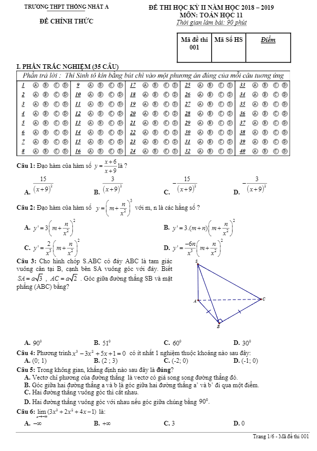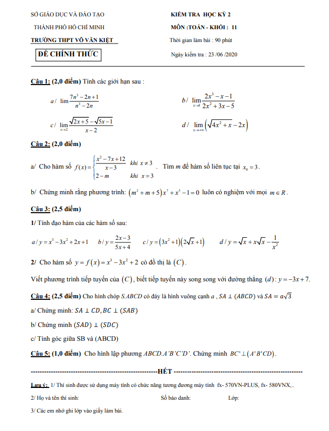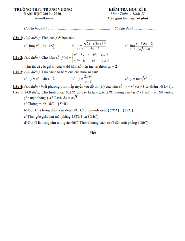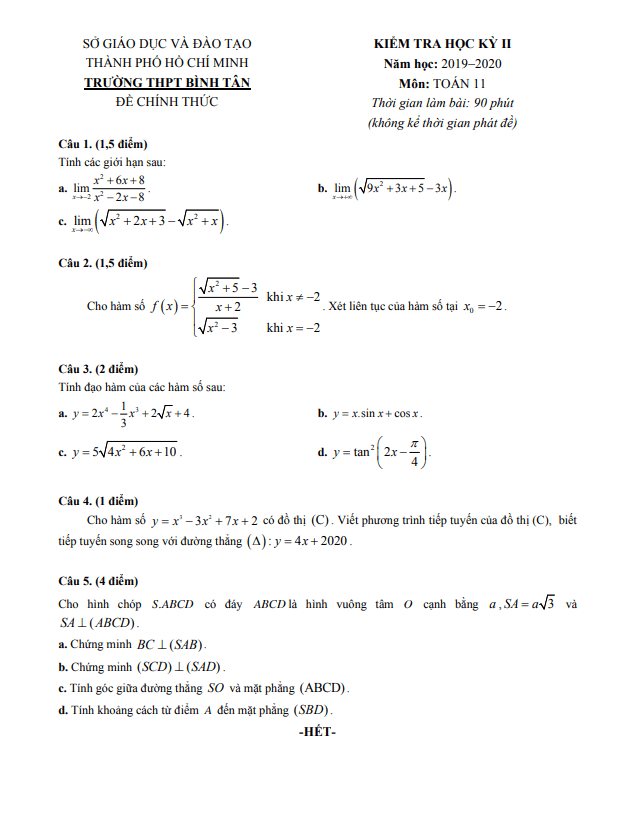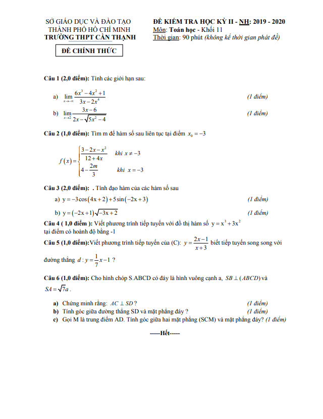 Tổng hợp ĐỀ THI HK2 TOÁN 11 có đáp án và lời giải chi tiết của các trường Trung học Phổ thông, Sở Giáo dục và Đào tạo trên toàn quốc (File PDF). Các ĐỀ THI HK2 TOÁN 11 mới nhất sẽ được cập nhật liên tục và nhanh nhất có thể sau khi kỳ thi diễn ra, đáp án và lời giải chi tiết cũng sẽ được TOANMATH.com cập nhật sau đó nhằm giúp bạn đọc thuận tiện trong việc tra cứu và đối chiếu đáp án.