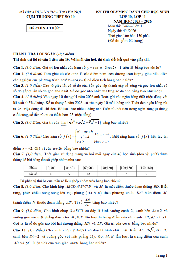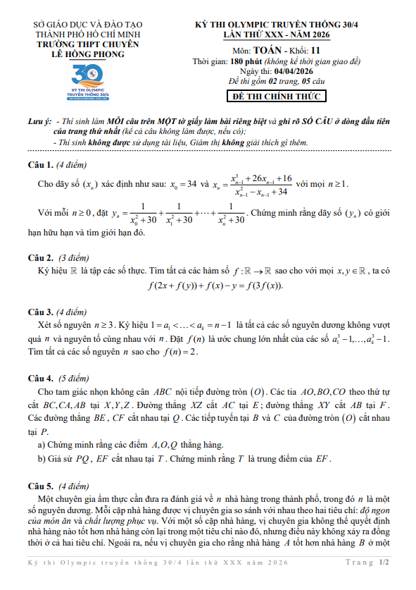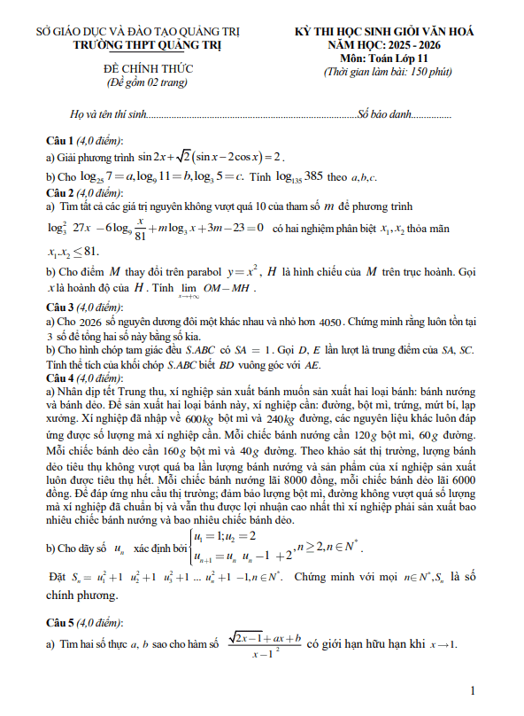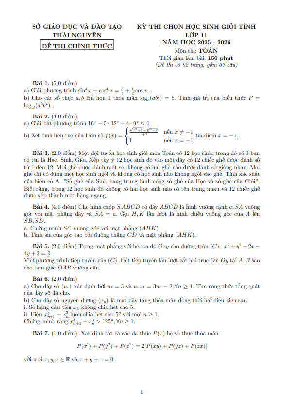 Tổng hợp ĐỀ THI HSG TOÁN 11 của các trường Trung học Phổ thông, các Sở Giáo dục và Đào tạo trên toàn quốc, có đáp án và lời giải chi tiết (định dạng PDF + WORD), hỗ trợ học sinh lớp 11 trong quá trình ôn tập chuẩn bị cho kỳ thi chọn học sinh giỏi Toán 11 các cấp: cấp trường / cấp huyện / cấp tỉnh / cấp Quốc gia.