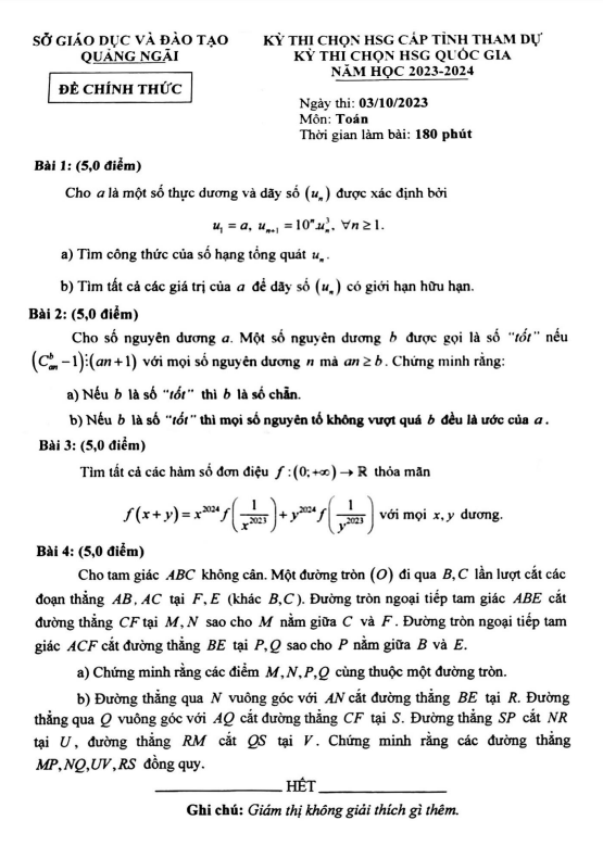 Đề chọn HSG tỉnh thi HSG QG môn Toán năm 2023 – 2024 sở GD&ĐT Quảng Ngãi