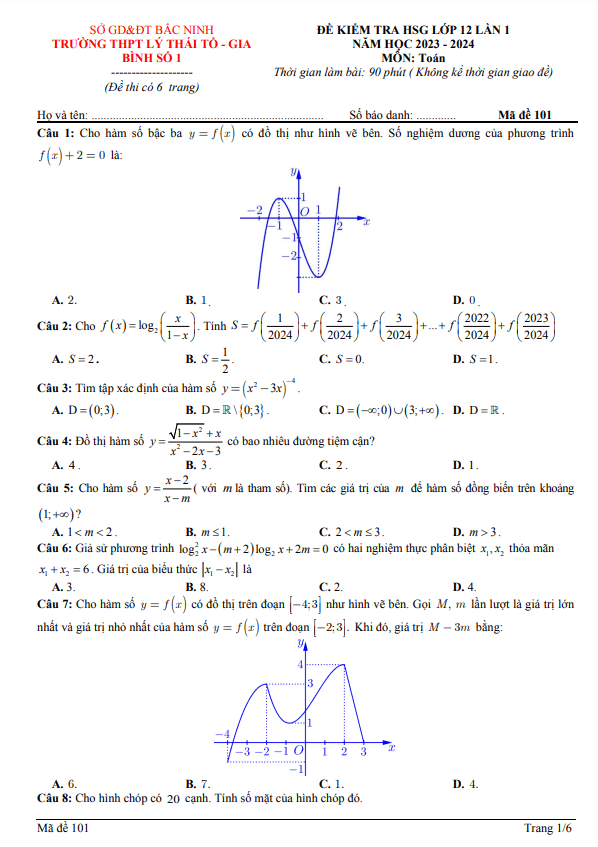 Đề HSG Toán 12 lần 1 năm 2023 – 2024 THPT Lý Thái Tổ & Gia Bình 1 – Bắc Ninh