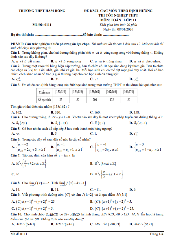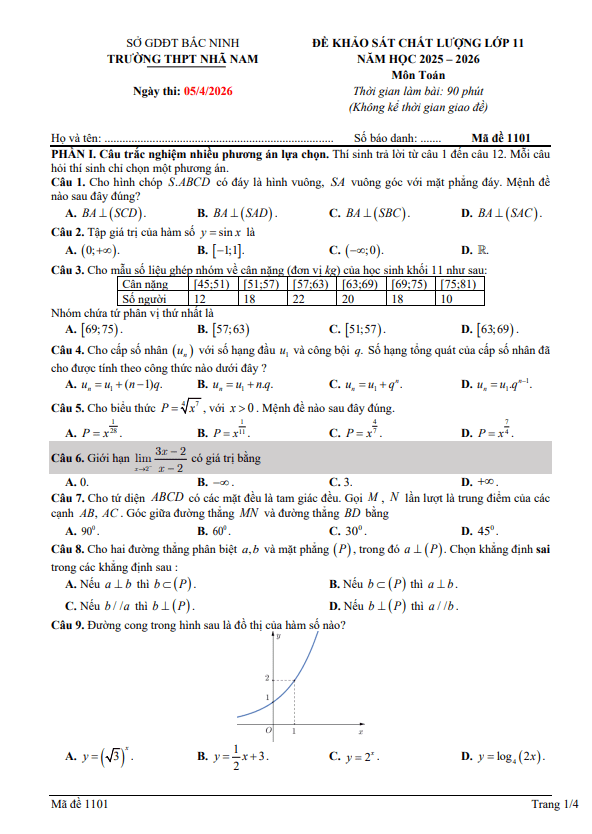 Tổng hợp ĐỀ THI KHẢO SÁT CHẤT LƯỢNG TOÁN 11 của các trường Trung học Phổ thông, các Sở Giáo dục và Đào tạo trên toàn quốc, có đáp án và lời giải chi tiết (định dạng PDF + WORD), hỗ trợ học sinh lớp 11 trong quá trình ôn tập chuẩn bị cho các kỳ thi: kiểm tra chất lượng đầu năm Toán 11; kiểm tra chất lượng cuối năm Toán 11; kiểm tra chất lượng định kỳ Toán 11.