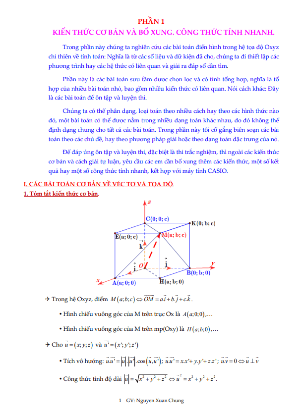 Các bài toán chọn lọc trong hệ tọa độ Oxyz (phần 1) – Nguyễn Xuân Chung