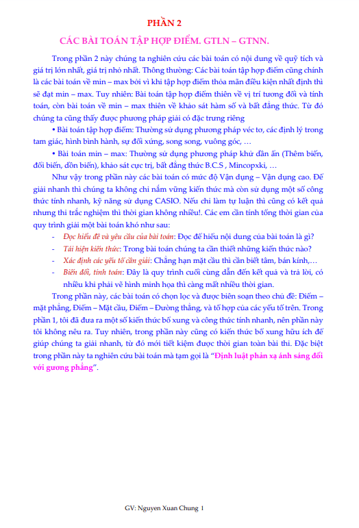 Các bài toán chọn lọc trong hệ tọa độ Oxyz (phần 2) – Nguyễn Xuân Chung