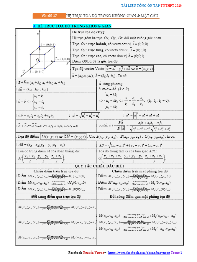 Tuyển tập các tài liệu môn Toán hay nhất về chủ đề PHƯƠNG PHÁP TOẠ ĐỘ TRONG KHÔNG GIAN trong chương trình môn Toán lớp 12, bao gồm các nội dung: Toạ Độ Của Vectơ Đối Với Một Hệ Trục Toạ Độ; Biểu Thức Toạ Độ Của Các Phép Toán Vectơ; Phương Trình Mặt Phẳng; Phương Trình Đường Thẳng Trong Không Gian; Phương Trình Mặt Cầu.