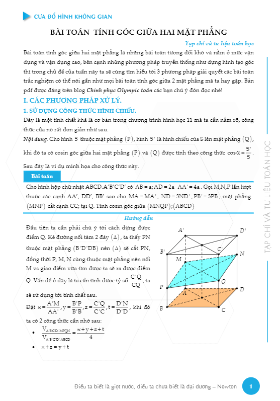 Chuyên đề góc và khoảng cách trong không gian – Nguyễn Nhanh Tiến