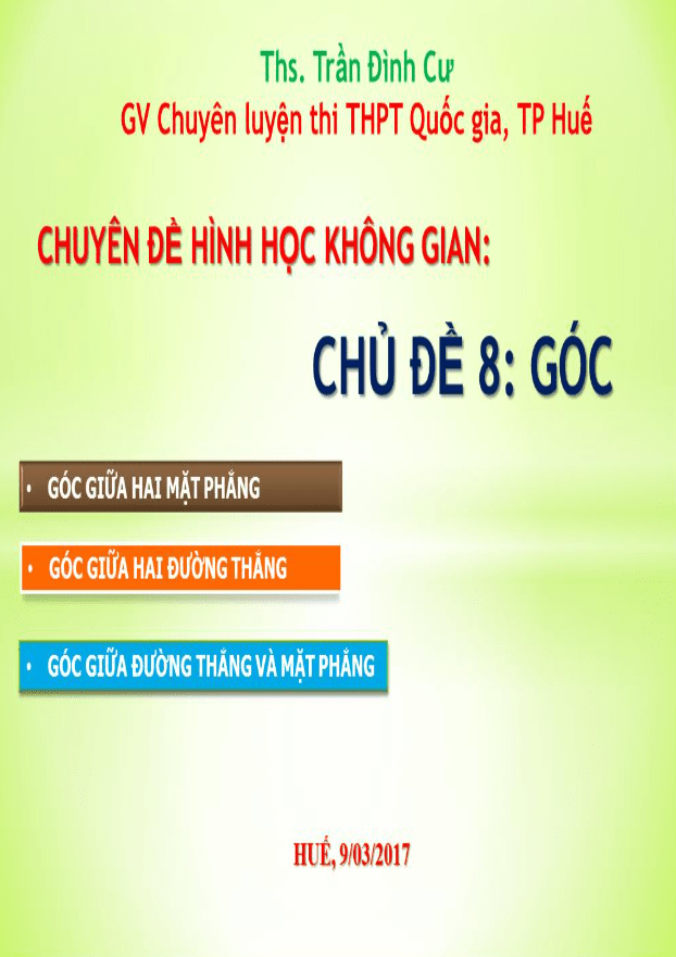 Tuyển tập các tài liệu môn Toán hay nhất về chủ đề QUAN HỆ VUÔNG GÓC TRONG KHÔNG GIAN trong chương trình môn Toán lớp 11, bao gồm các nội dung: Hai Đường Thẳng Vuông Góc; Đường Thẳng Vuông Góc Với Mặt Phẳng; Hai Mặt Phẳng Vuông Góc; Khoảng Cách Trong Không Gian; Phép Chiếu Vuông Góc; Góc Giữa Đường Thẳng Và Mặt Phẳng; Góc Nhị Diện; Thể Tích.