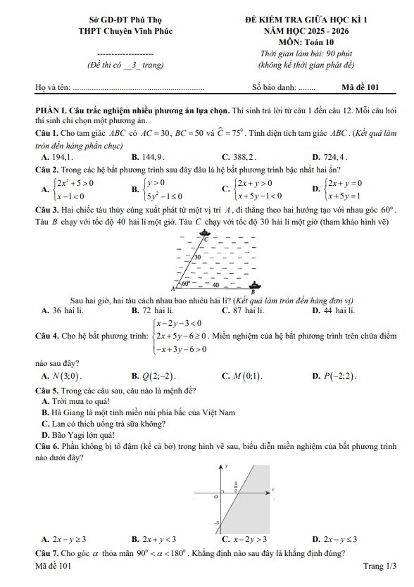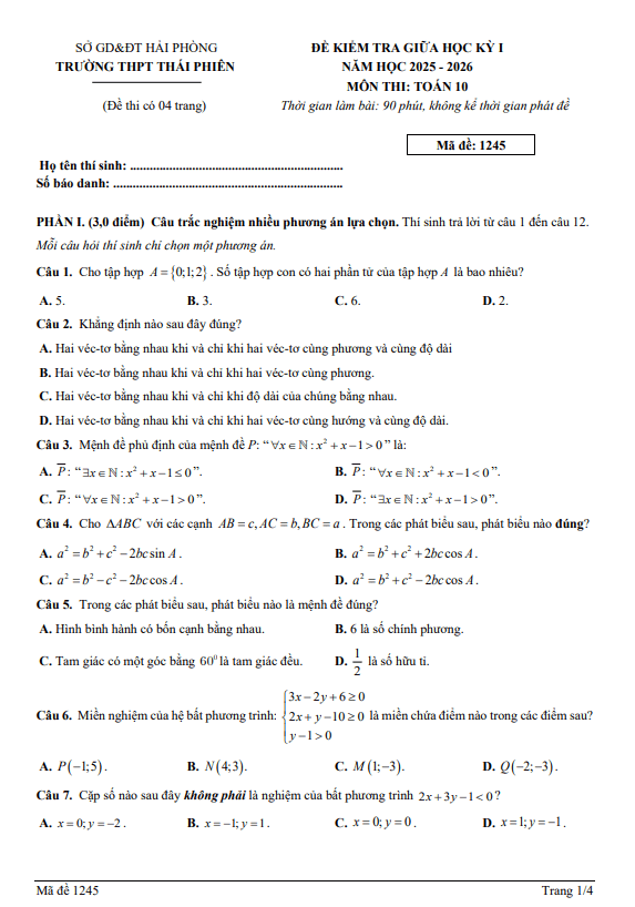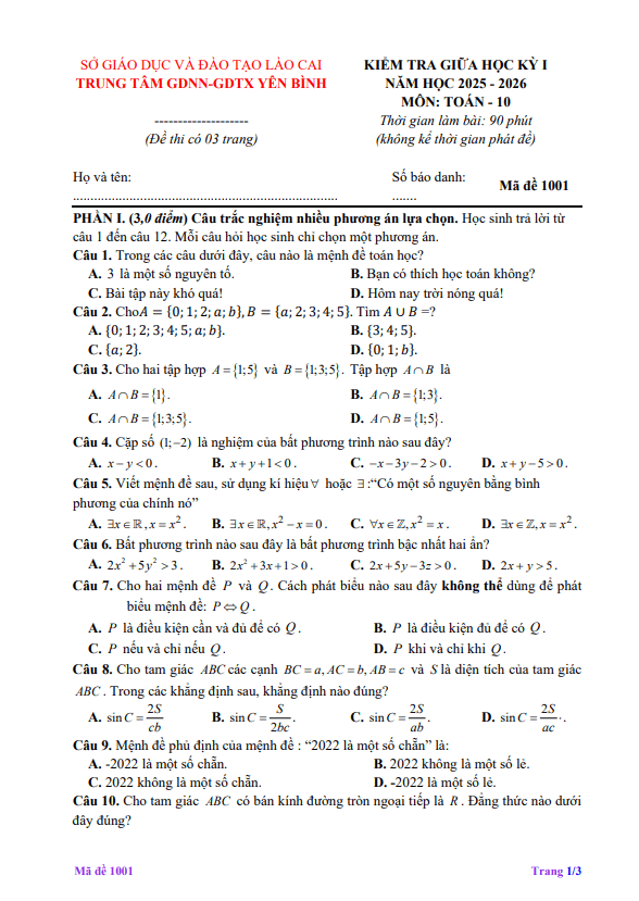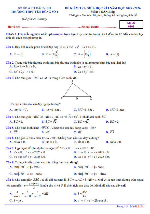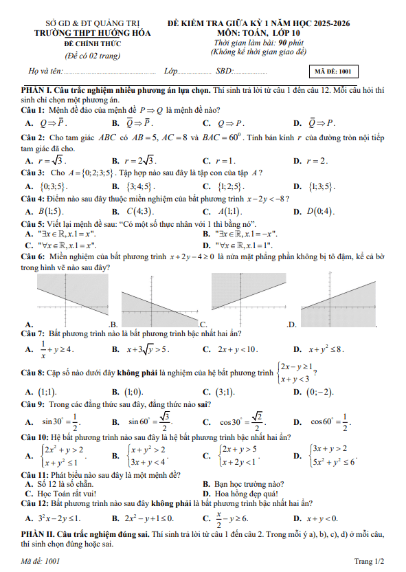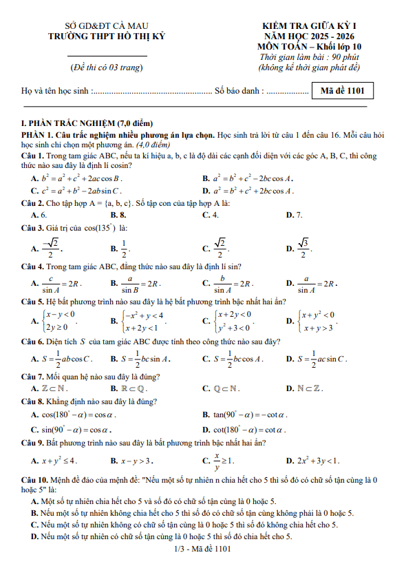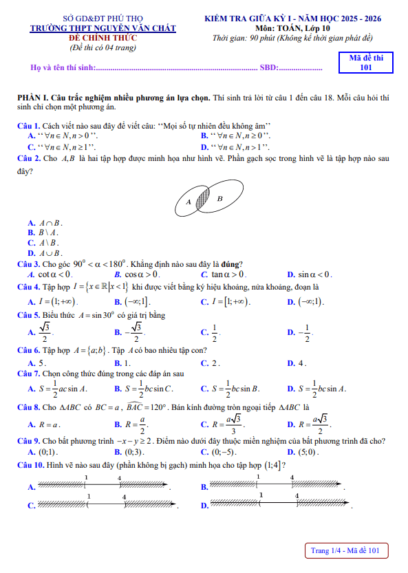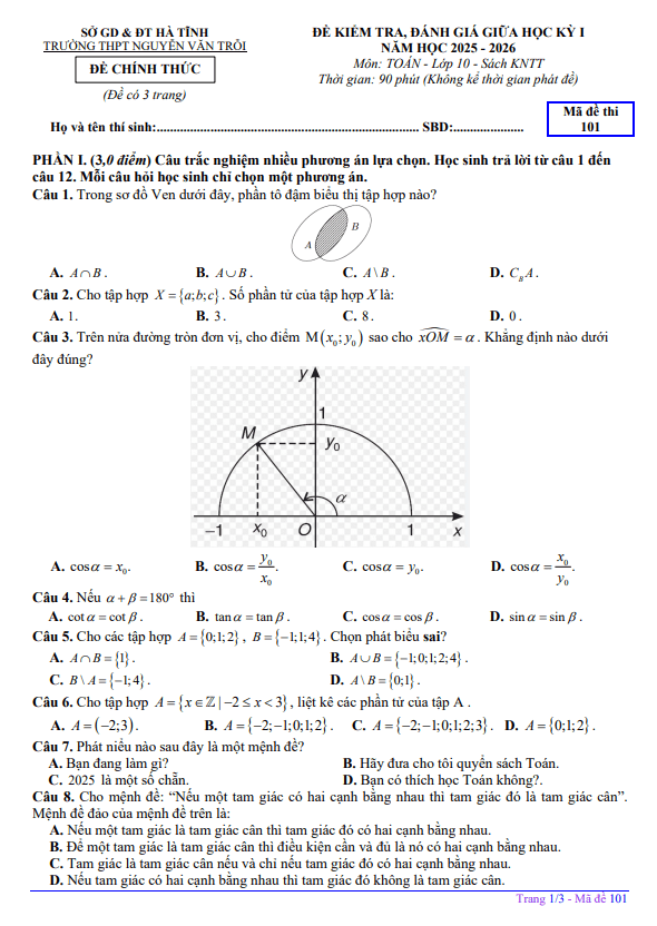Tổng hợp ĐỀ THI GIỮA HK1 TOÁN 10 có đáp án và lời giải chi tiết của các trường Trung học Phổ thông, Sở Giáo dục và Đào tạo trên toàn quốc (File PDF). Các ĐỀ THI GIỮA HK1 TOÁN 10 mới nhất sẽ được cập nhật liên tục và nhanh nhất có thể sau khi kỳ thi diễn ra, đáp án và lời giải chi tiết cũng sẽ được TOANMATH.com cập nhật sau đó nhằm giúp bạn đọc thuận tiện trong việc tra cứu và đối chiếu đáp án.