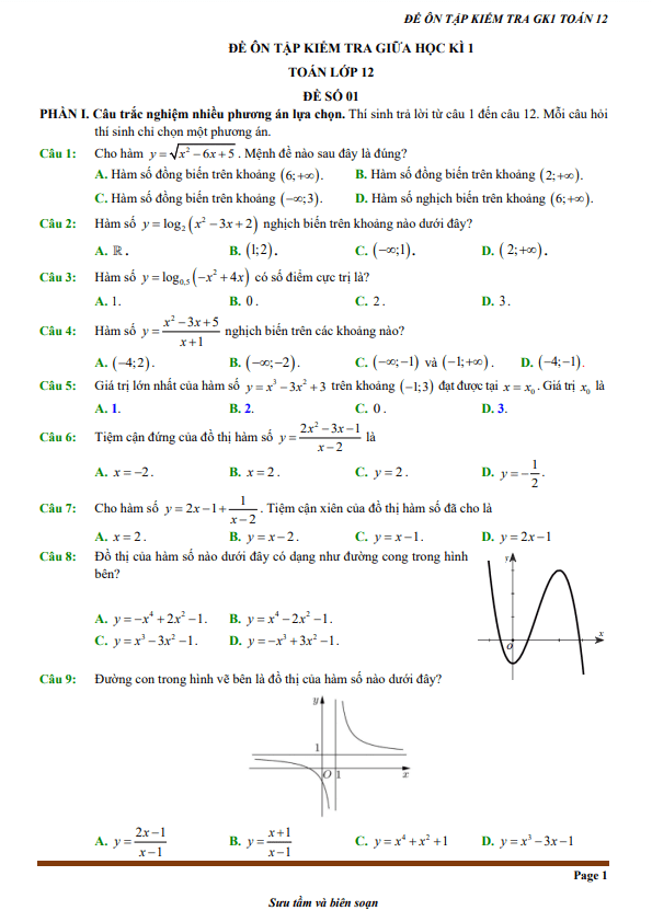 Bộ đề ôn tập kiểm tra giữa học kì 1 môn Toán 12 theo cấu trúc mới