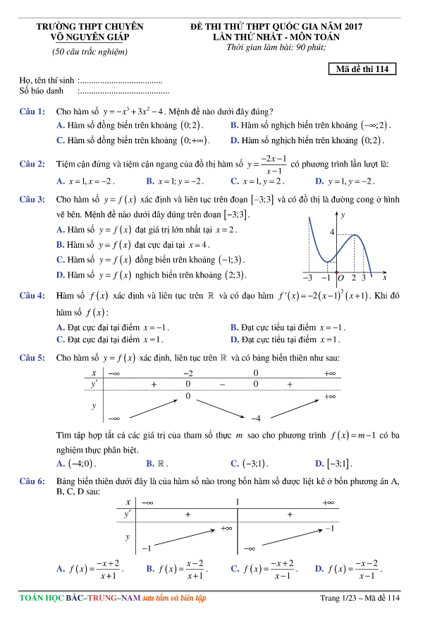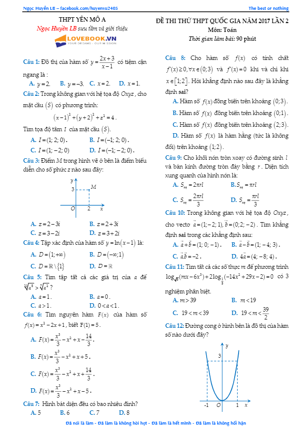 Đề Thi Thử THPT Môn Toán 2017