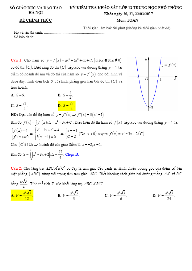 Đề thi thử THPT Quốc gia 2017 môn Toán sở GD và ĐT Hà Nội