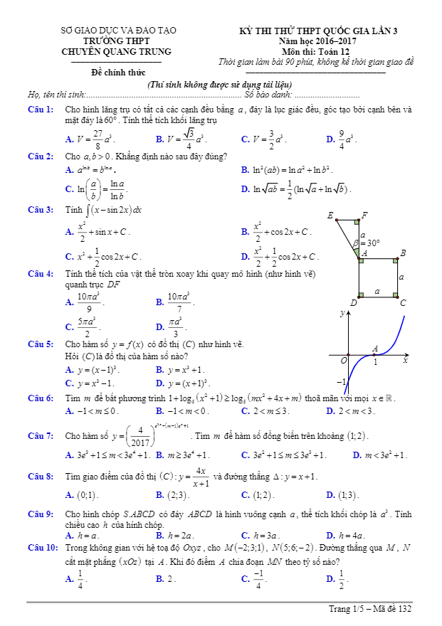 Đề Thi Thử THPT Môn Toán 2017
