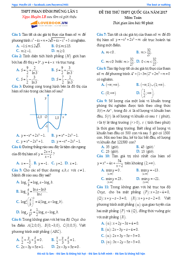 Đề thi thử THPT Quốc gia 2017 môn Toán trường THPT Phan Đình Phùng – Hà Nội