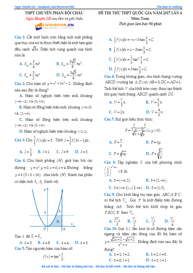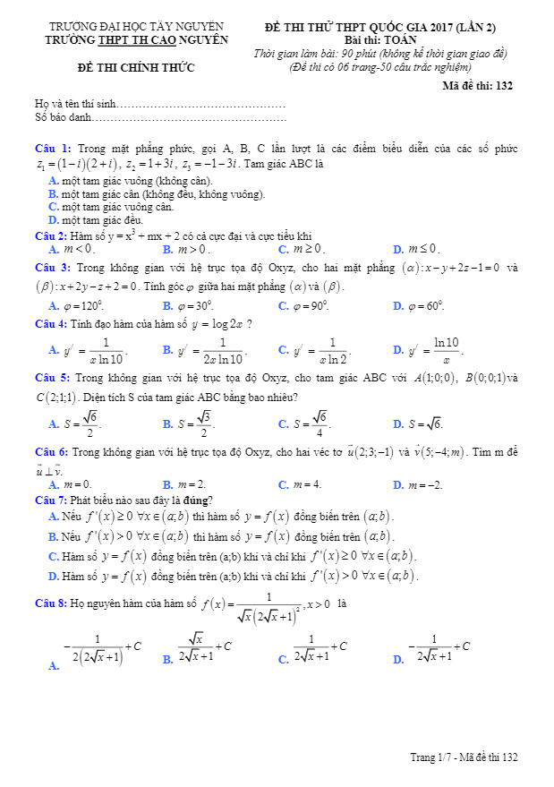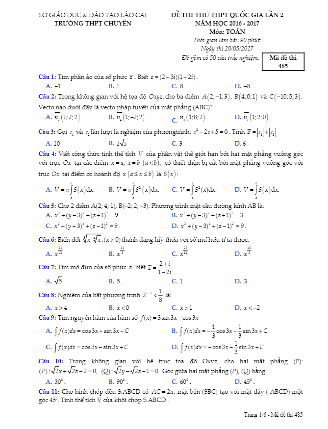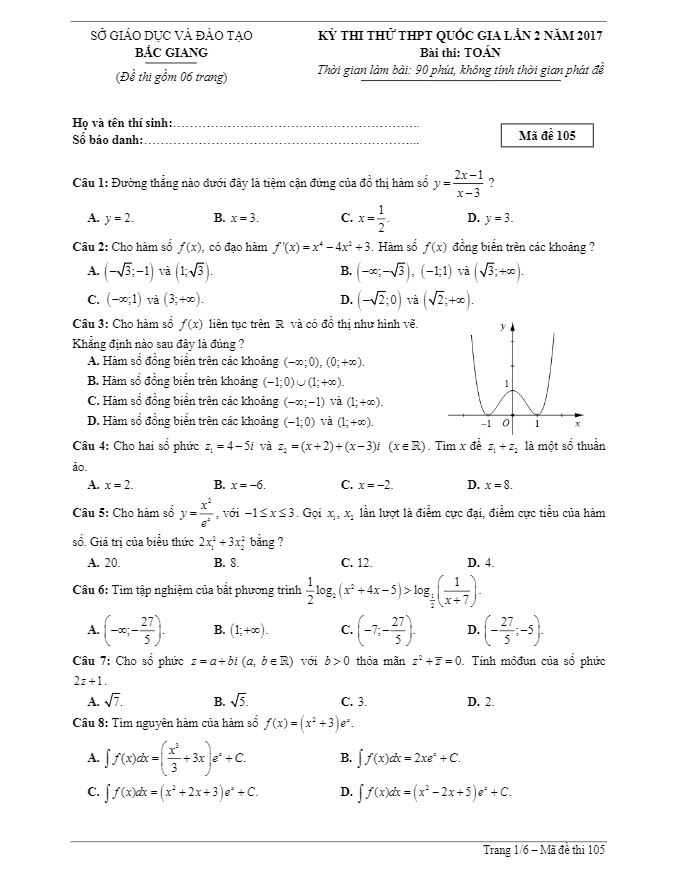 Chuyên mục ĐỀ THI THỬ THPT MÔN TOÁN 2017 bao gồm: Đề Thi Thử Tốt Nghiệp THPT Năm 2017 Môn Toán, Đề Minh Họa Tốt Nghiệp THPT Năm 2017 Môn Toán, Đề Tham Khảo Tốt Nghiệp THPT Năm 2017 Môn Toán … của các trường Trung học Phổ thông, Sở GD&ĐT và Bộ GD&ĐT; giúp học sinh ôn thi tốt nghiệp Trung học Phổ thông Quốc gia, ôn thi tuyển sinh vào các trường Đại học – Cao đẳng.