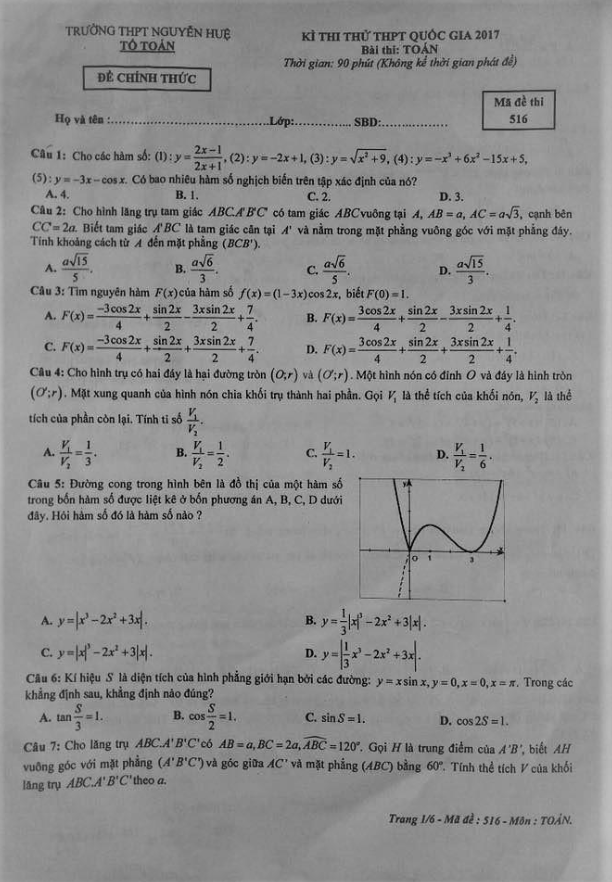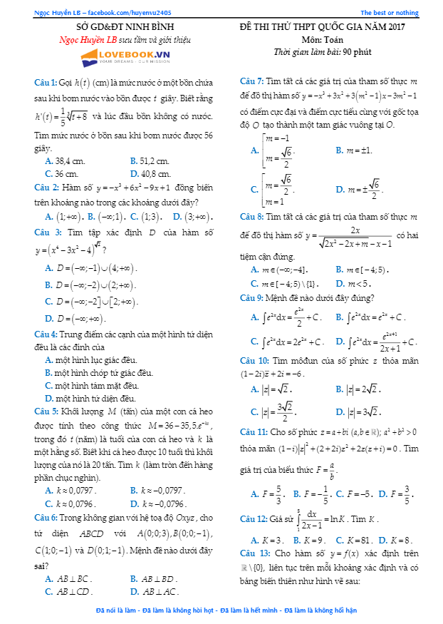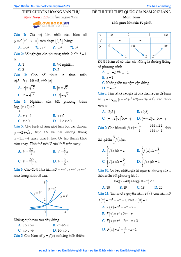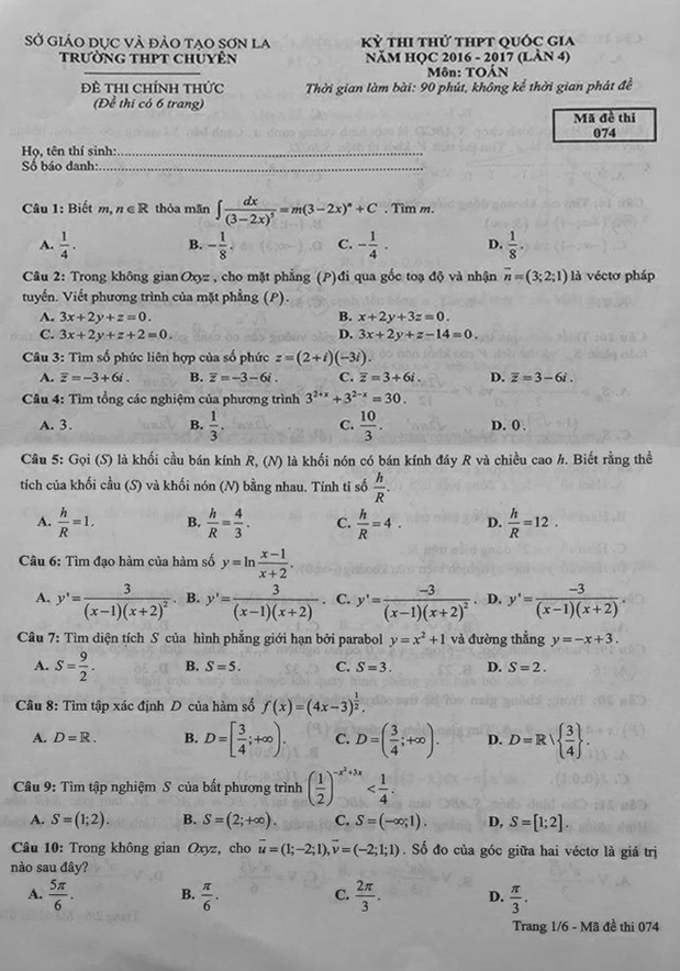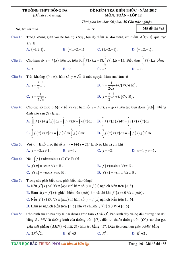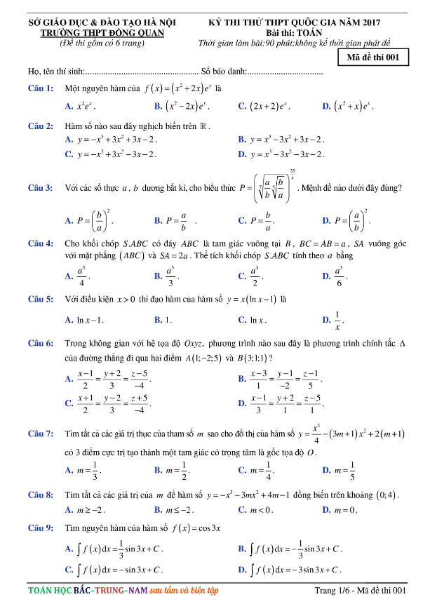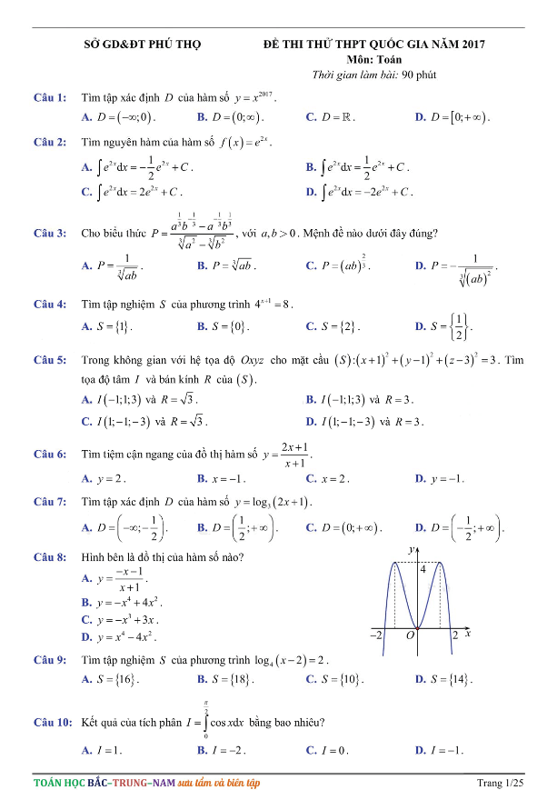 Các ĐỀ THI THỬ THPT MÔN TOÁN 2017 sẽ được TOANMATH.com cập nhật nhanh nhất và chuẩn xác nhất sau kỳ thi, bao gồm file PDF và file WORD (nếu có), có đầy đủ đáp án và lời giải chi tiết. Quý thầy, cô giáo và bạn đọc có thể chia sẻ thêm ĐỀ THI THỬ THPT MÔN TOÁN 2017 bằng cách gửi về địa chỉ email: toanmath.com@gmail.com, nhằm tạo nguồn đề thi phong phú, đa dạng để các em học sinh tham khảo và rèn luyện.