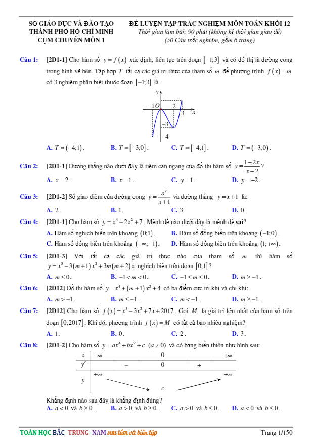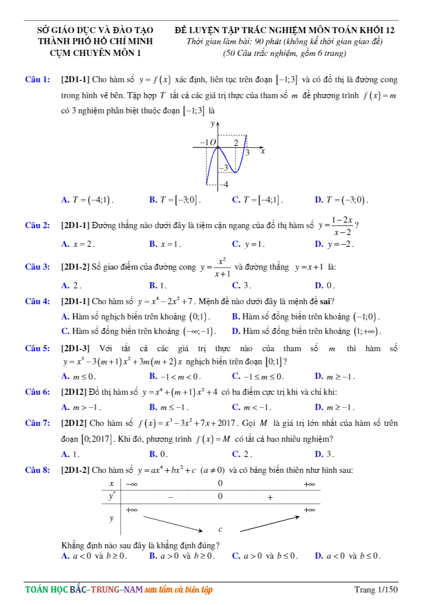 Đề thi thử THPT Quốc gia 2017 môn Toán sở GD và ĐT TP. HCM (Cụm chuyên môn I)