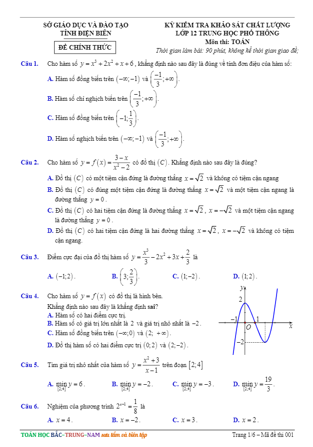 Đề thi thử THPT Quốc gia 2017 môn Toán sở GD và ĐT Điện Biên