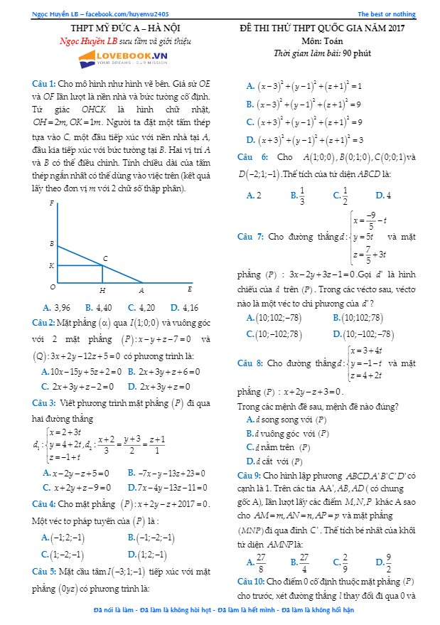 Đề thi thử THPT Quốc gia 2017 môn Toán trường THPT Mỹ Đức A – Hà Nội
