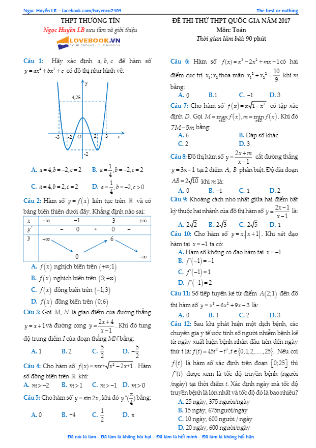 Đề thi thử THPT Quốc gia 2017 môn Toán trường THPT Thường Tín – Hà Nội