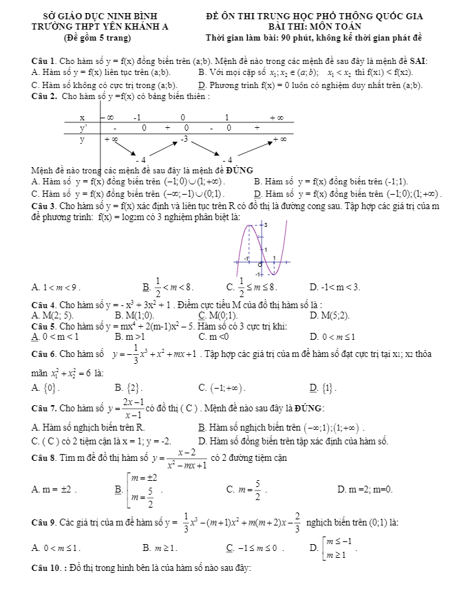 Đề ôn thi THPT Quốc gia 2017 môn Toán trường THPT Yên Khánh A – Ninh Bình