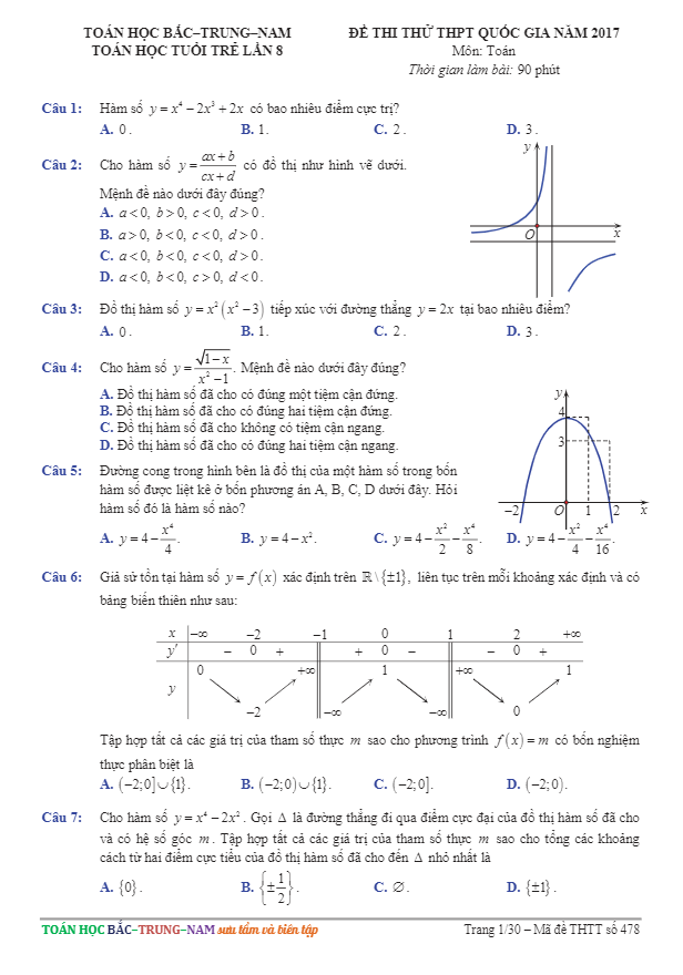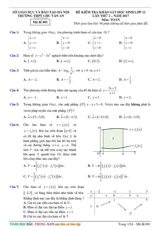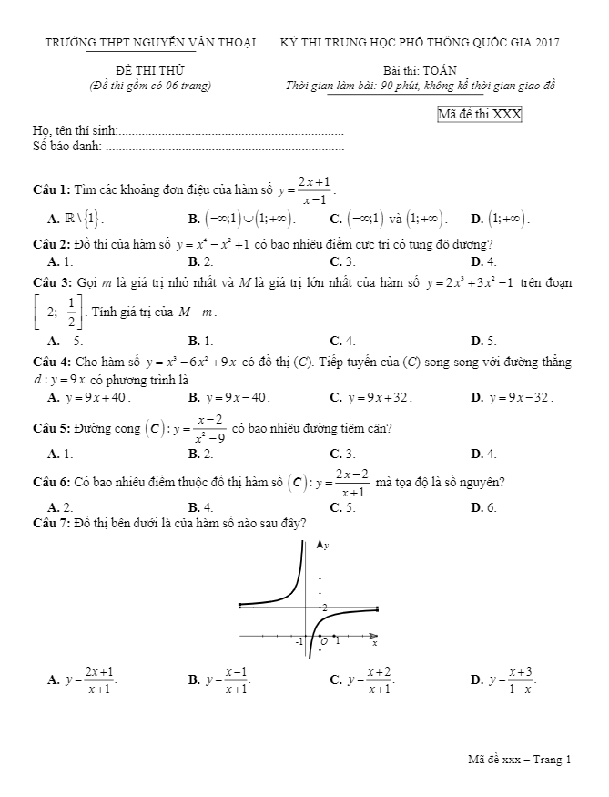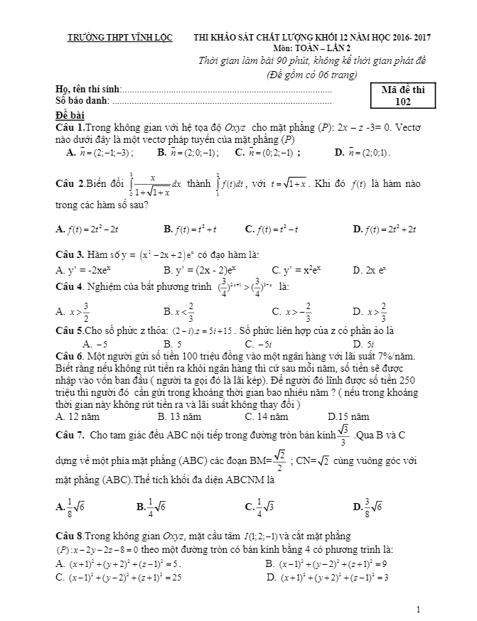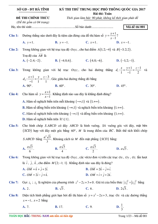 Đề Thi Thử THPT Môn Toán 2017