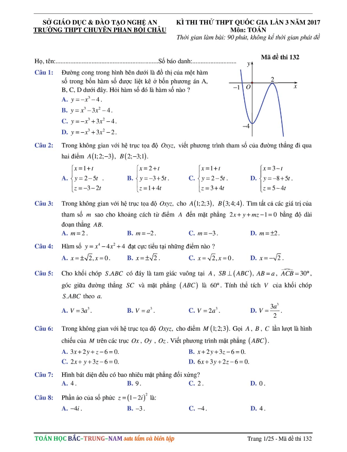 Đề thi thử THPT Quốc gia 2017 môn Toán trường THPT Chuyên Phan Bội Châu – Nghệ An lần 3