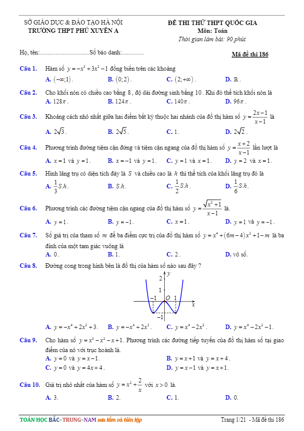Đề Thi Thử THPT Môn Toán