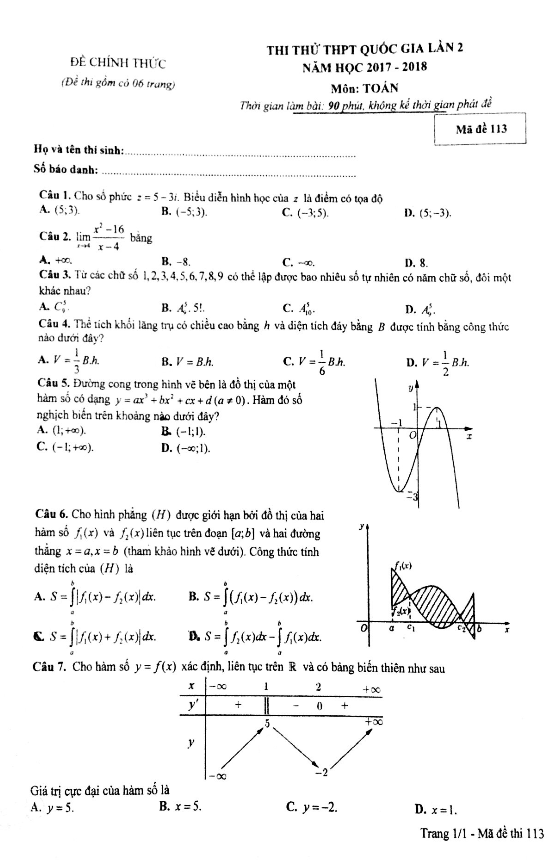Đề Thi Thử THPT Môn Toán 2018