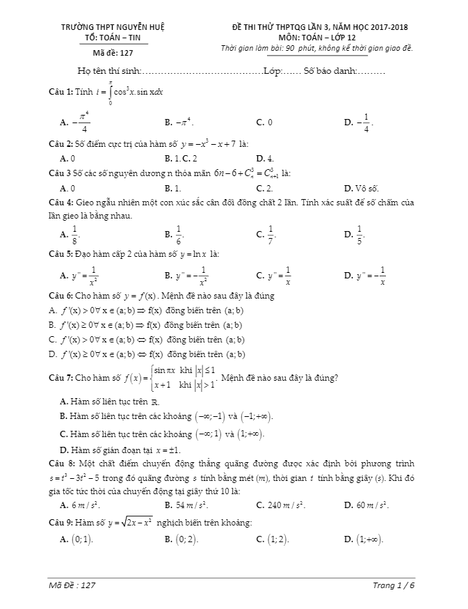 Chuyên mục ĐỀ THI THỬ THPT MÔN TOÁN 2018 bao gồm: Đề Thi Thử Tốt Nghiệp THPT Năm 2018 Môn Toán, Đề Minh Họa Tốt Nghiệp THPT Năm 2018 Môn Toán, Đề Tham Khảo Tốt Nghiệp THPT Năm 2018 Môn Toán … của các trường Trung học Phổ thông, Sở GD&ĐT và Bộ GD&ĐT; giúp học sinh ôn thi tốt nghiệp Trung học Phổ thông Quốc gia, ôn thi tuyển sinh vào các trường Đại học – Cao đẳng.