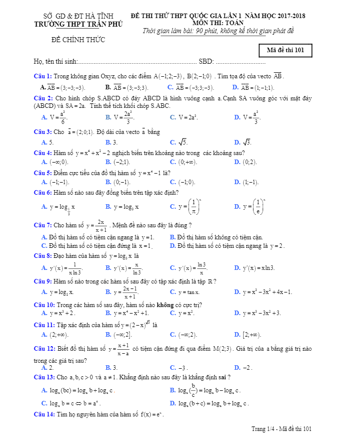 Các ĐỀ THI THỬ THPT MÔN TOÁN 2018 sẽ được TOANMATH.com cập nhật nhanh nhất và chuẩn xác nhất sau kỳ thi, bao gồm file PDF và file WORD (nếu có), có đầy đủ đáp án và lời giải chi tiết. Quý thầy, cô giáo và bạn đọc có thể chia sẻ thêm ĐỀ THI THỬ THPT MÔN TOÁN 2018 bằng cách gửi về địa chỉ email: toanmath.com@gmail.com, nhằm tạo nguồn đề thi phong phú, đa dạng để các em học sinh tham khảo và rèn luyện.