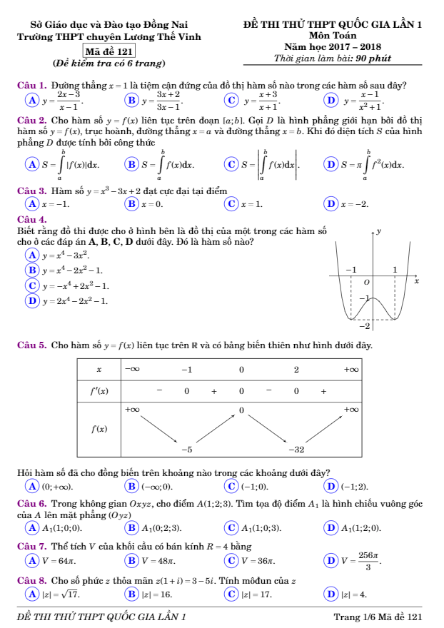 Đề thi thử môn Toán 2018 trường THPT chuyên Lương Thế Vinh – Đồng Nai lần 1