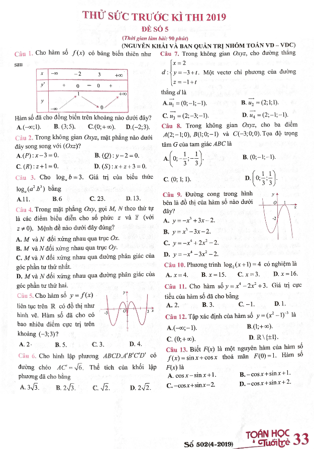 Đề thử sức trước kỳ thi THPT QG 2019 môn Toán – Toán Học Tuổi Trẻ (Đề số 5)