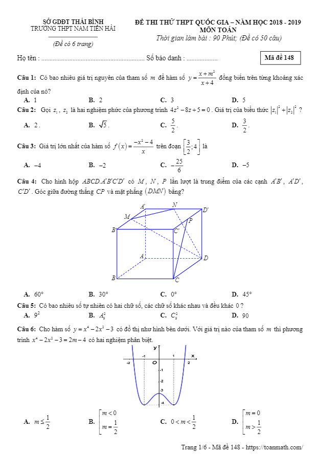Đề thi thử Toán THPT Quốc gia 2019 trường THPT Nam Tiền Hải – Thái Bình