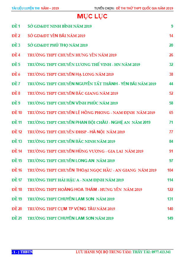 Tuyển chọn 21 đề thi thử THPT Quốc gia 2019 môn Toán có đáp án
