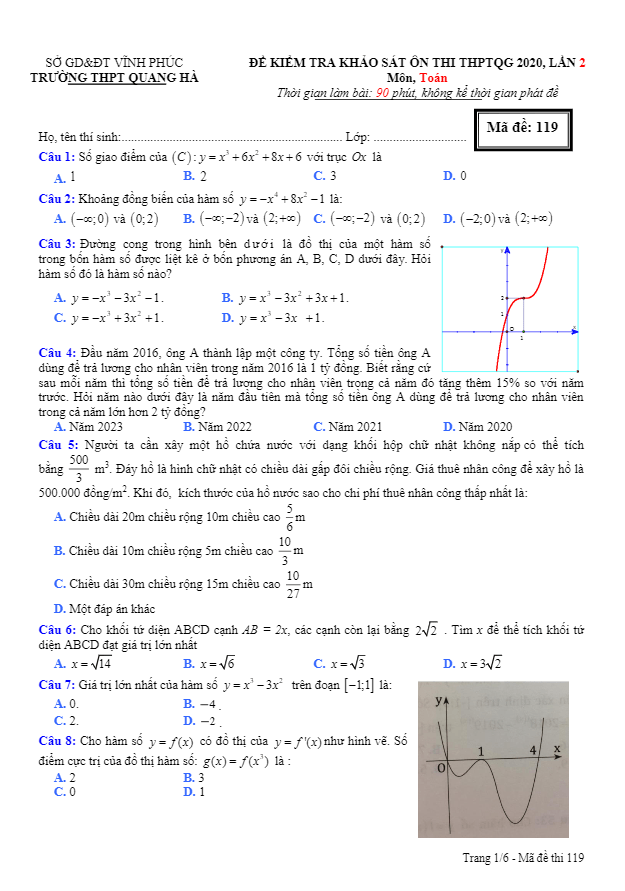Đề ôn thi THPTQG 2020 lần 2 môn Toán trường THPT Quang Hà – Vĩnh Phúc