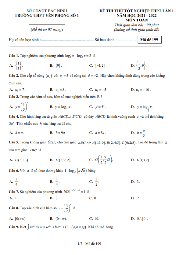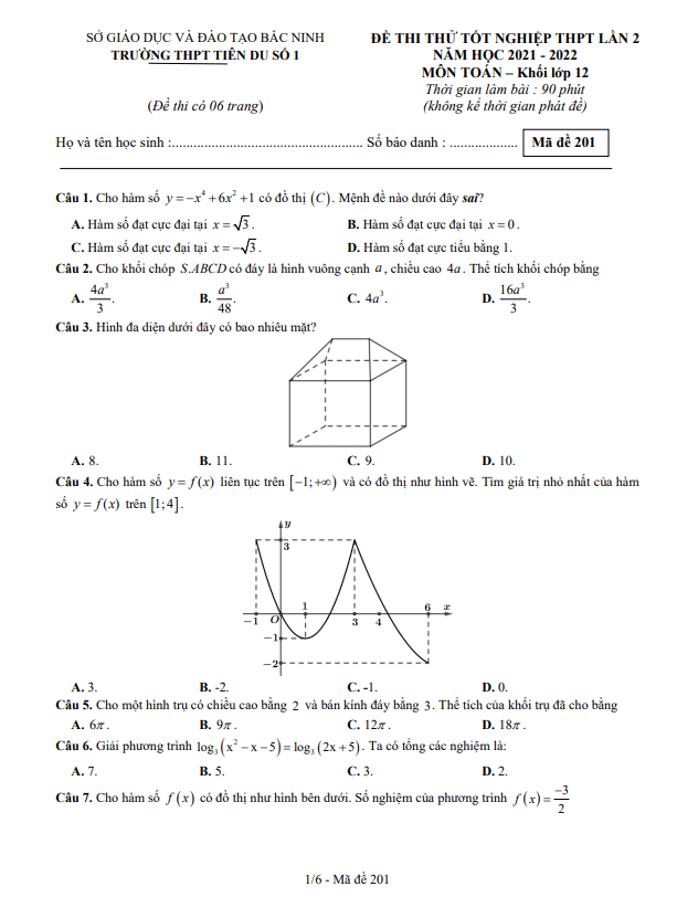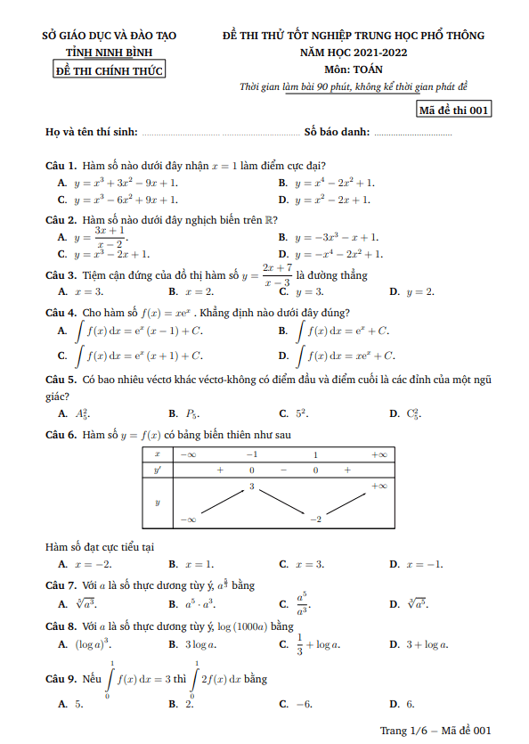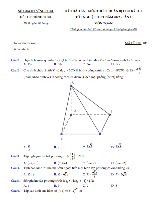 Chuyên mục ĐỀ THI THỬ THPT MÔN TOÁN 2022 bao gồm: Đề Thi Thử Tốt Nghiệp THPT Năm 2022 Môn Toán, Đề Minh Họa Tốt Nghiệp THPT Năm 2022 Môn Toán, Đề Tham Khảo Tốt Nghiệp THPT Năm 2022 Môn Toán … của các trường Trung học Phổ thông, Sở GD&ĐT và Bộ GD&ĐT; giúp học sinh ôn thi tốt nghiệp Trung học Phổ thông Quốc gia, ôn thi tuyển sinh vào các trường Đại học – Cao đẳng.