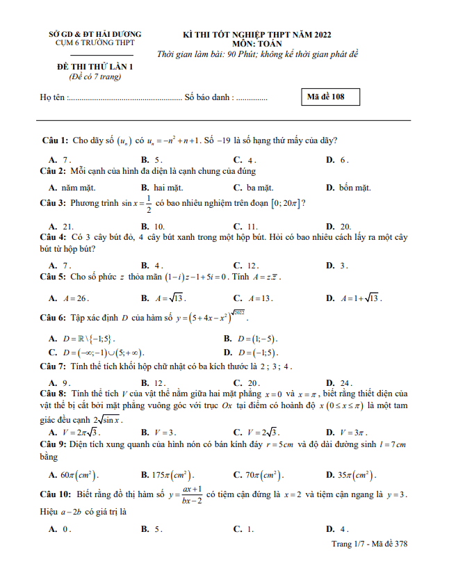 Các ĐỀ THI THỬ THPT MÔN TOÁN 2022 sẽ được TOANMATH.com cập nhật nhanh nhất và chuẩn xác nhất sau kỳ thi, bao gồm file PDF và file WORD (nếu có), có đầy đủ đáp án và lời giải chi tiết. Quý thầy, cô giáo và bạn đọc có thể chia sẻ thêm ĐỀ THI THỬ THPT MÔN TOÁN 2022 bằng cách gửi về địa chỉ email: toanmath.com@gmail.com, nhằm tạo nguồn đề thi phong phú, đa dạng để các em học sinh tham khảo và rèn luyện.