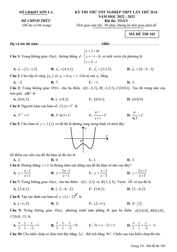 Đề thi thử tốt nghiệp THPT 2023 môn Toán lần 2 sở GD&ĐT Sơn La