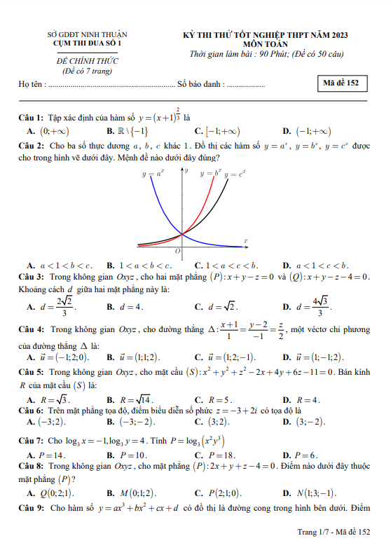 Đề thi thử tốt nghiệp THPT 2023 môn Toán cụm thi đua số 1 – Ninh Thuận