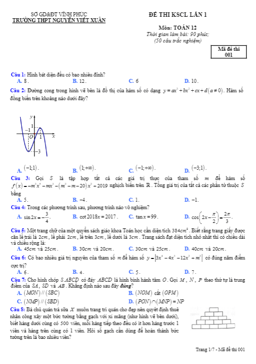 Đề KSCL Toán 12 lần 1 năm 2019 – 2020 trường Nguyễn Viết Xuân – Vĩnh Phúc