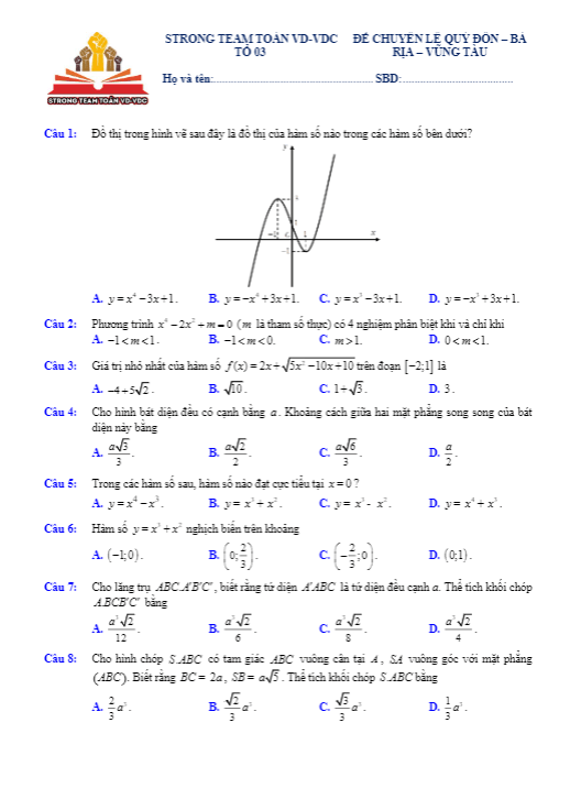 Đề KSCL Toán 12 lần 1 năm 2019 – 2020 trường chuyên Lê Quý Đôn – BR VT