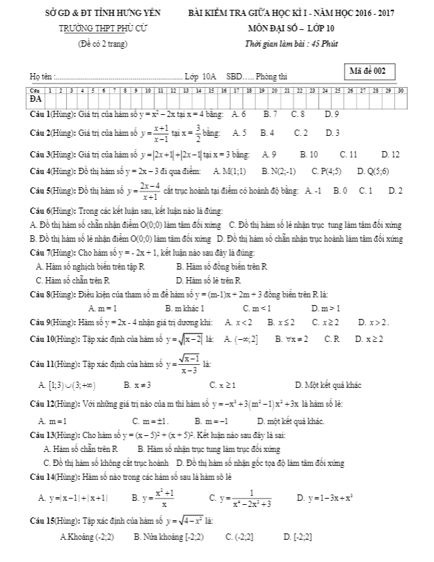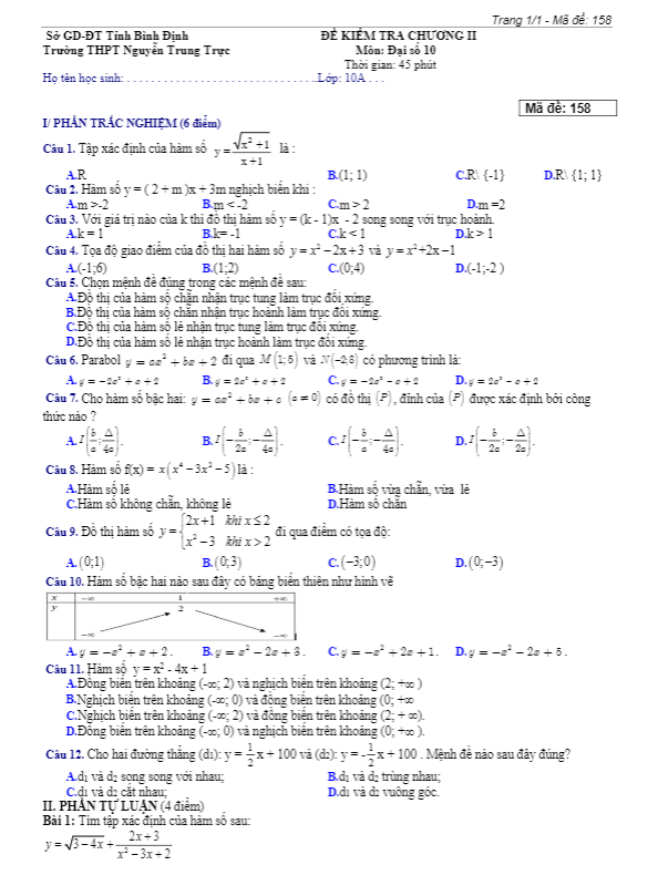 Các đề kiểm tra Đại số 10 chương 2 bao gồm các đề kiểm tra 1 tiết (45 phút), đề kiểm tra định kỳ cuối chương … theo hình thức trắc nghiệm, tự luận, hoặc trắc nghiệm kết hợp với tự luận.