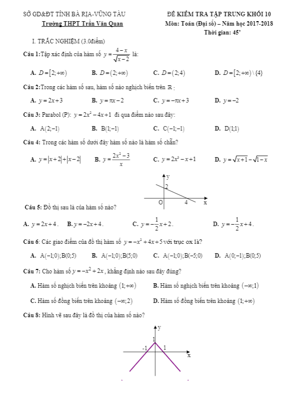 Tổng hợp đề kiểm tra Đại số 10 chương 2 – hàm số bậc nhất và bậc hai có đáp án và lời giải chi tiết của các giáo viên và các trường THPT trên toàn quốc.